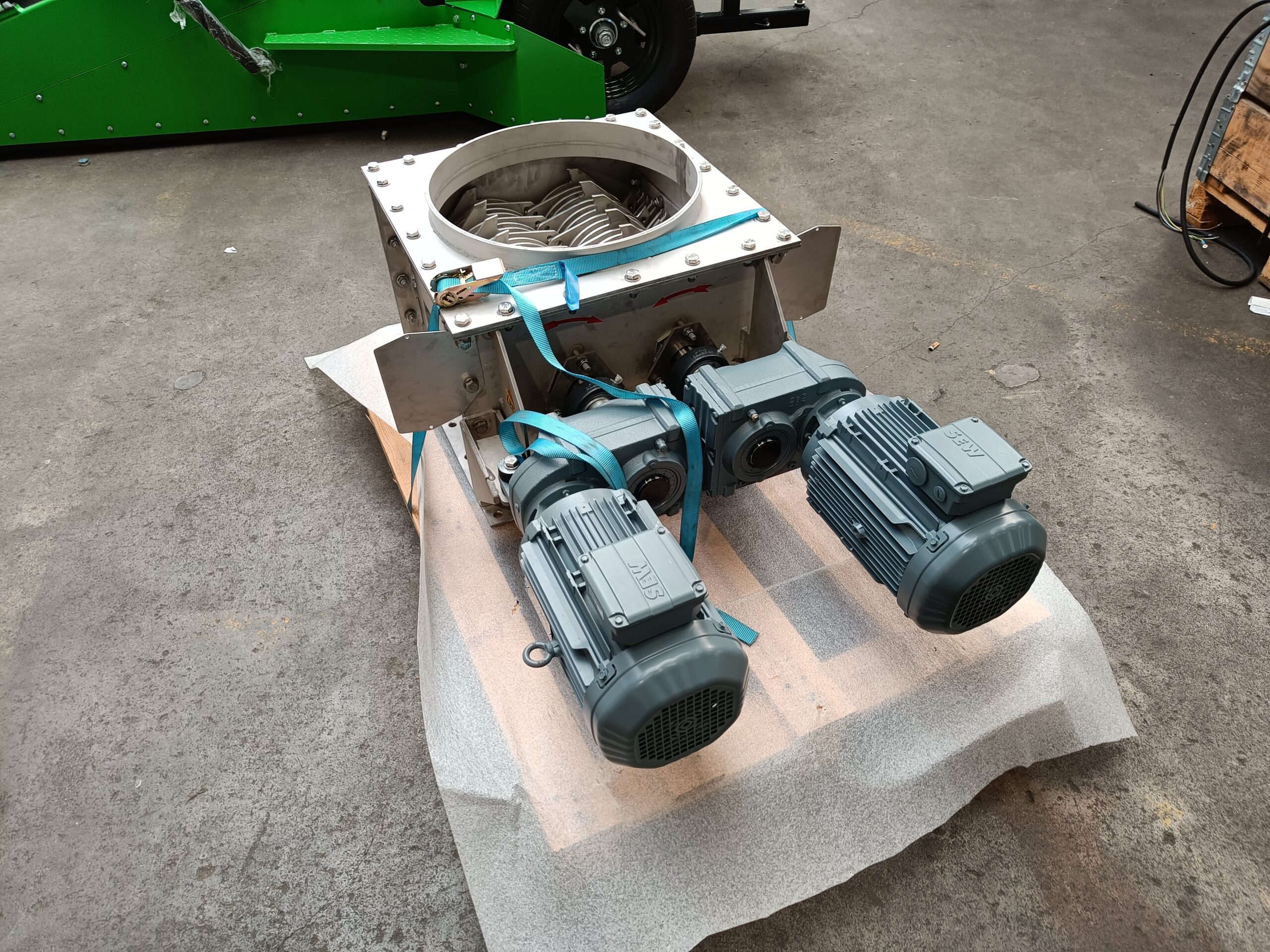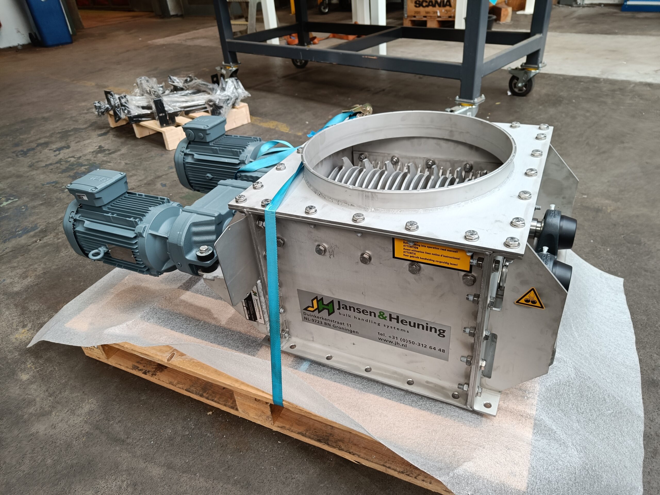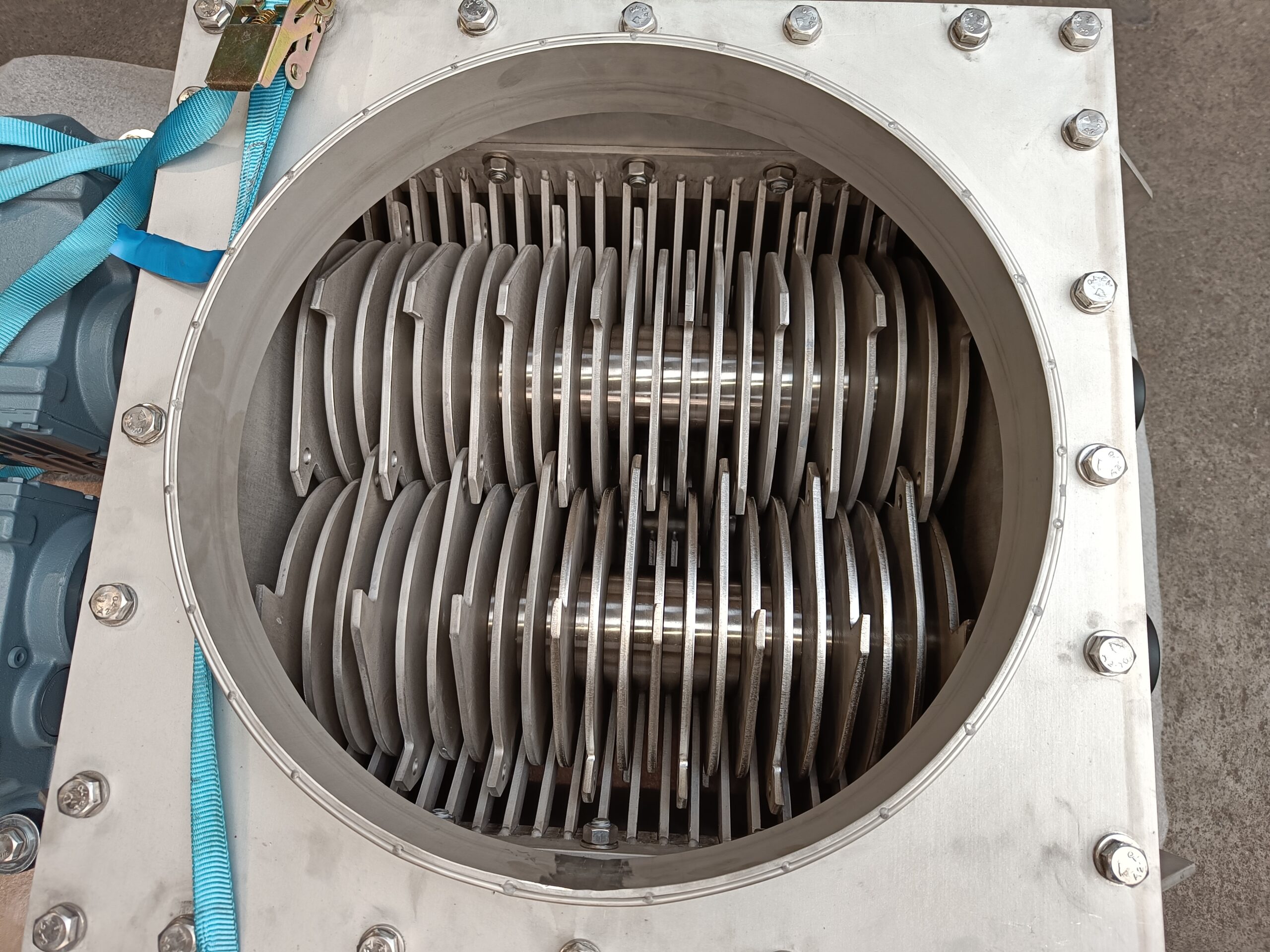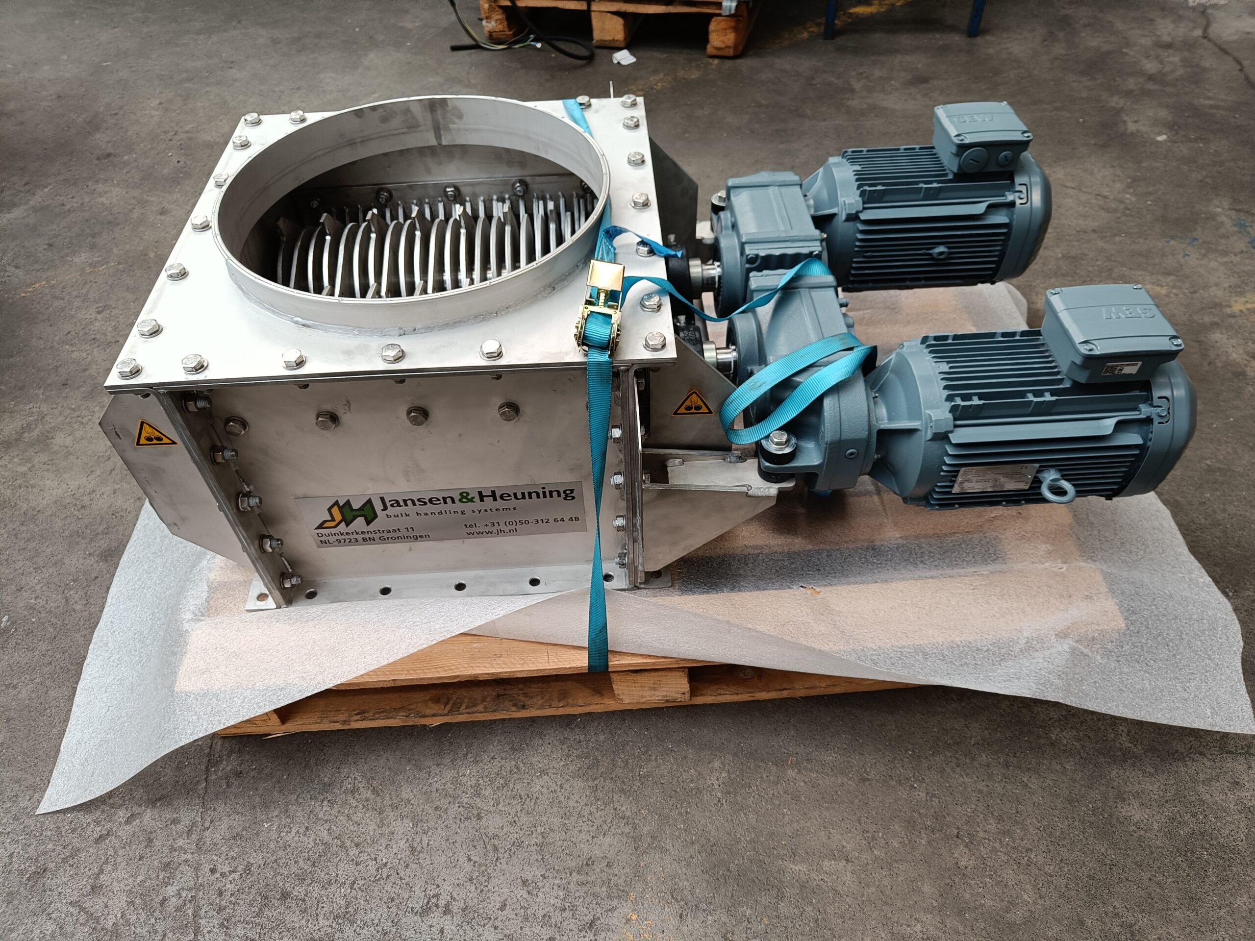 Een kluitenbreker vermaalt samen­geklonterde productmassa’s die ontstaan door opslag of verhoogde druk. De machine breekt kluiten zodat product opnieuw vrij stroomt. Bij grotere verharde massa’s verwijst Jansen&Heuning naar de volautomatische bigbag crusher.