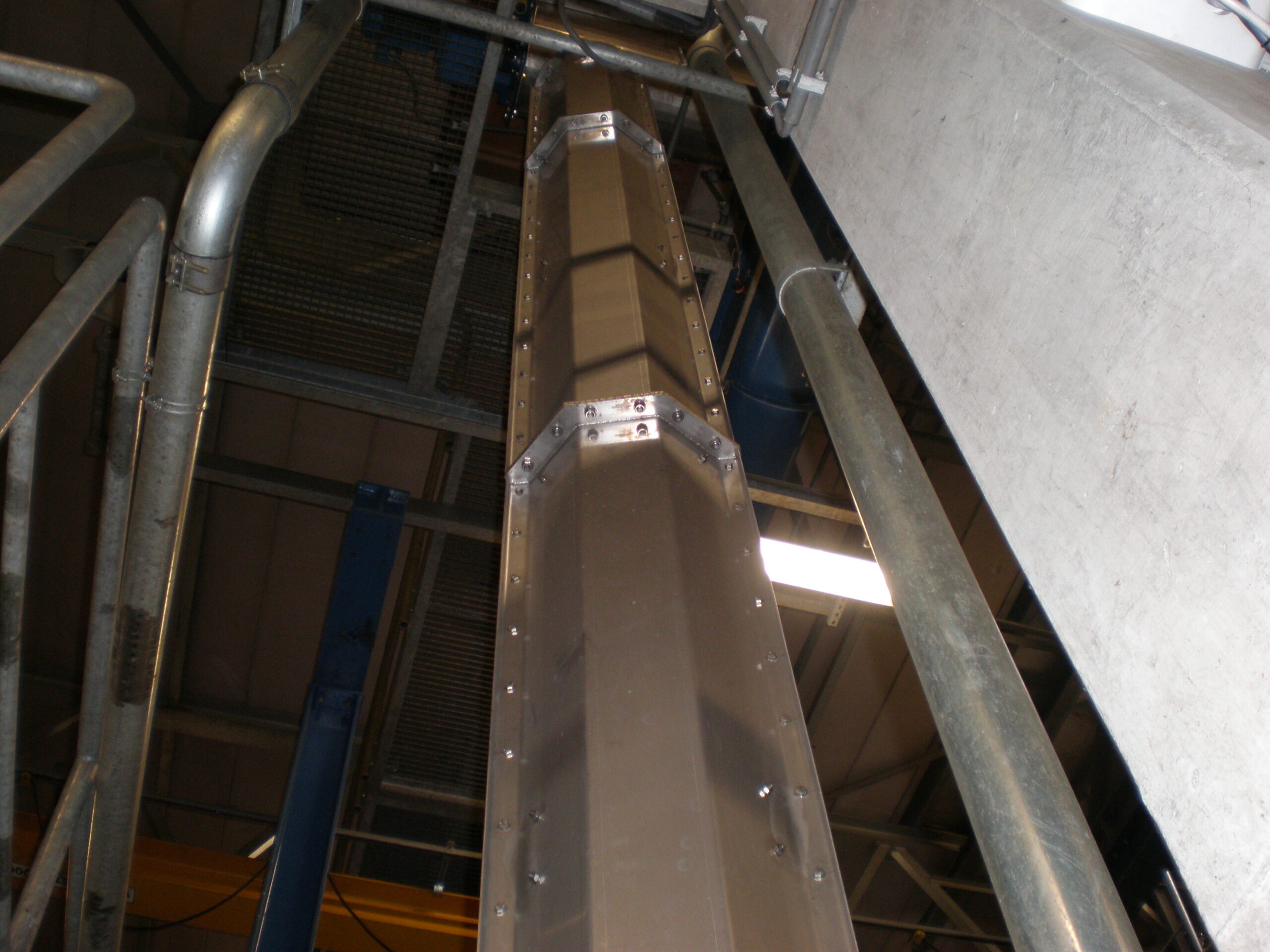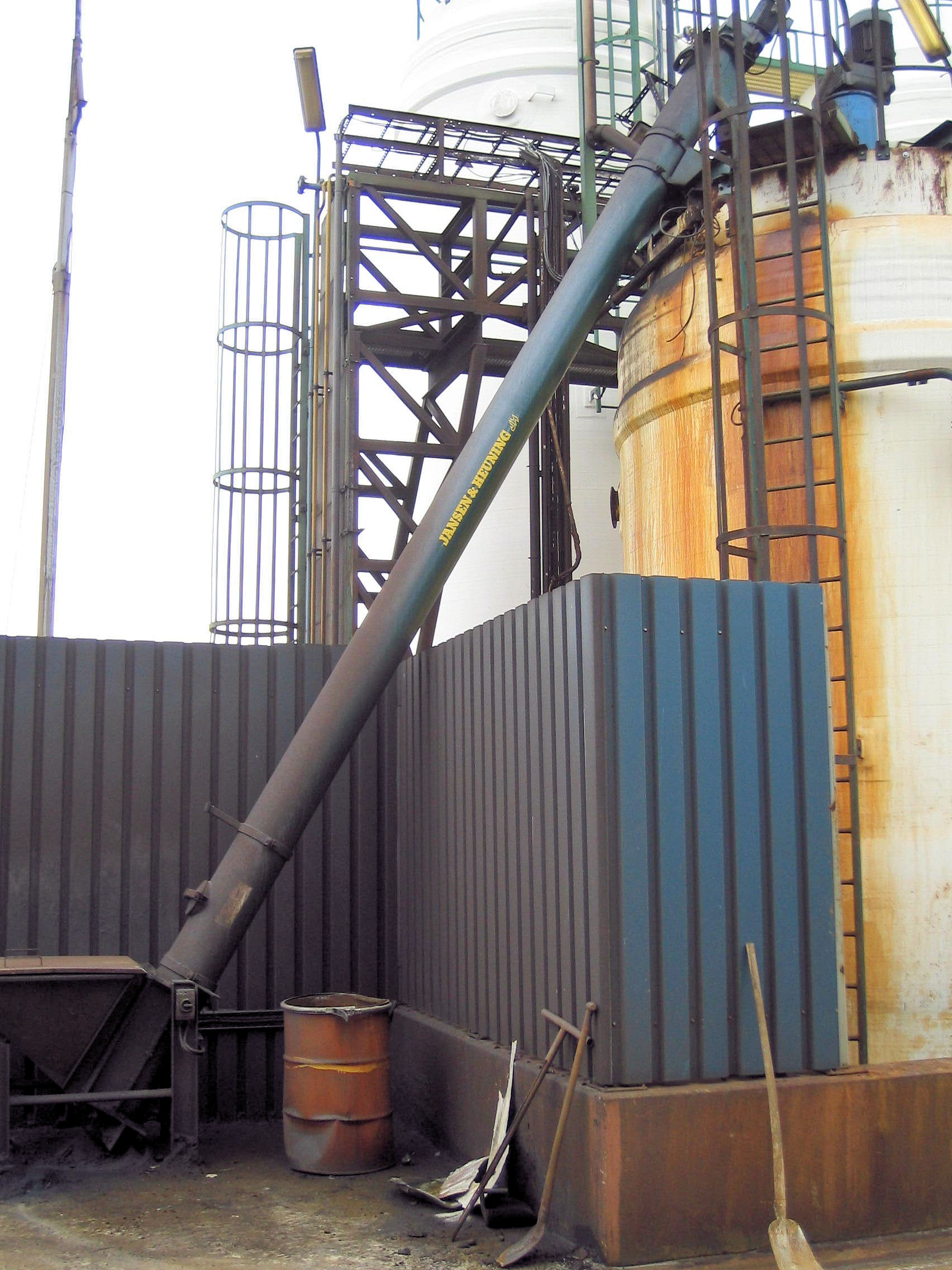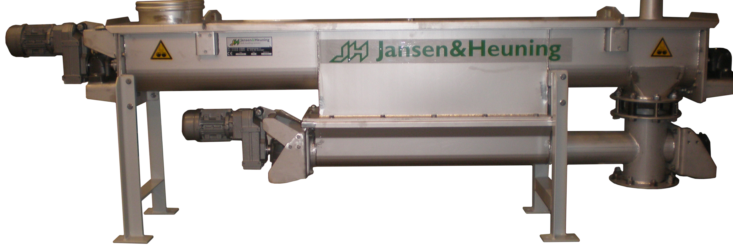 Jansen&Heuning supplies screw conveyors for a wide range of industries, including food processing, chemicals, recycling, mineral handling, and agriculture. For sticky or cohesive materials, a shaftless screw conveyor with ribbon design is available. Screw conveyors come in various diameters and capacities.