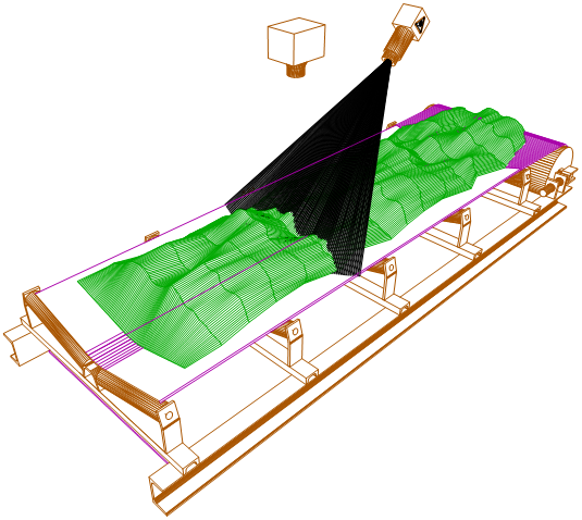 Een laserstraal wordt onder een hoek op het profiel van het product op de band geprojecteerd en een speciale camera leest deze afbeelding 50 keer per seconde in. De resolutie is groter dan 1.000 x 1.000 pixels. Dit betekent dat er per seconde minstens 50 Mb informatie verwerkt wordt. Hiervoor wordt gebruik gemaakt van moderne elektronica.